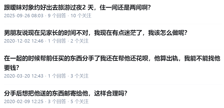 4,不知道对方是什么想法,是不是对我也有好感,还是只是想找个搭子避免无聊?还是单纯想睡?
