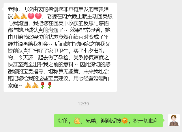 首先非常感谢您之前在21年的时候,给予过我恋爱方面非常关键、非常有帮助的指导,后面我和当时恋爱的女生顺利进入了婚姻,目前已经结婚2年半了,今年我31岁,我老婆32岁